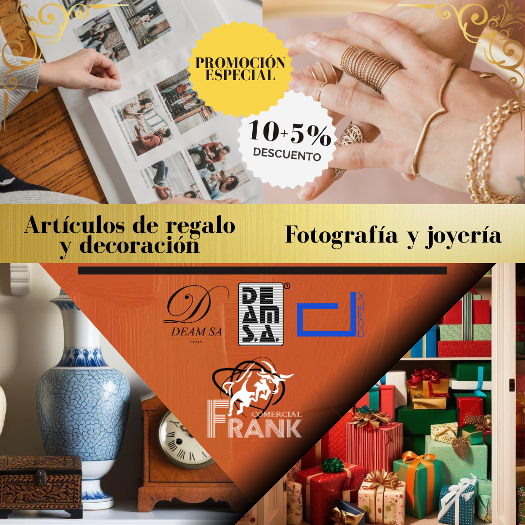 Promoción de artículos de regalo y de fotografía y joyería con un descuento del 10+5% solo en pedidos por la web.
